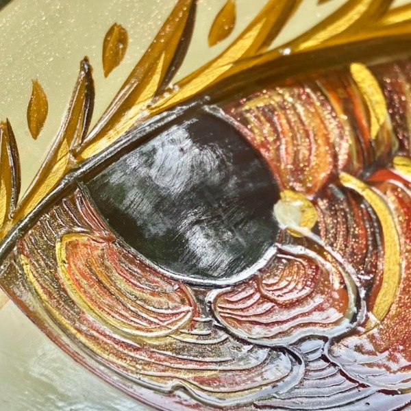 Se trata de una Piezas caladas en mdf 9 mm, ilustrada con textura y laqueada.