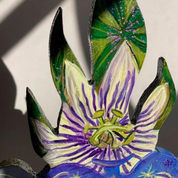 Pieza calada en mdf, ilustrada con textura, pintada con acrílicos