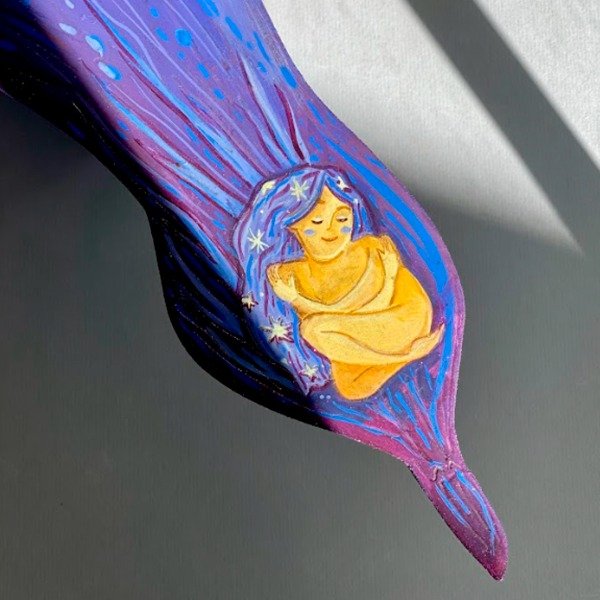 Pieza calada a mano en mdf, ilustrada con textura, pintada con acrílicos