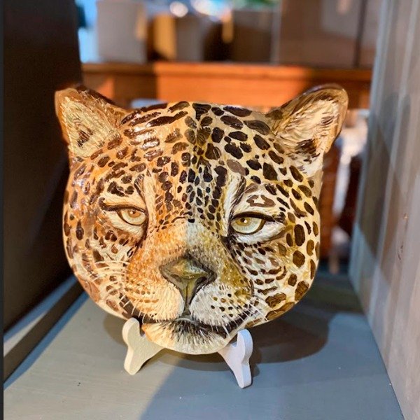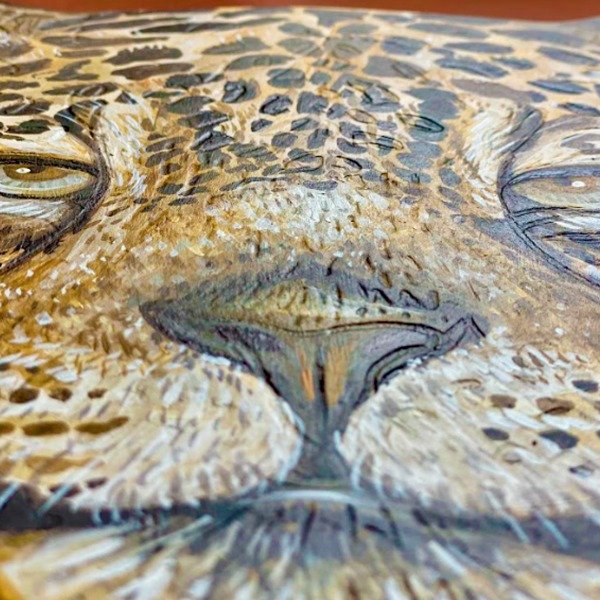 Pieza calada a mano en mdf, ilustrada con textura, pintada con acrílicos